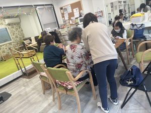 デイサービスあそびの家では週に1度ほど編み物の先生に来ていただいています。