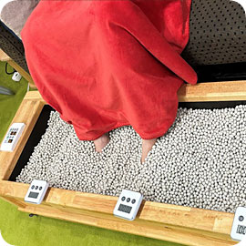 お湯の代わりにセラミックボールを敷き詰めて足を温める温熱健康器具です