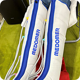 空気の力で下肢のマッサージを行うエアーマッサージ機です